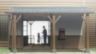 大畑駅はこの話のほか、1期5話、3期6話でも出てきます。大畑駅周辺はその他の話でも使われていますね。