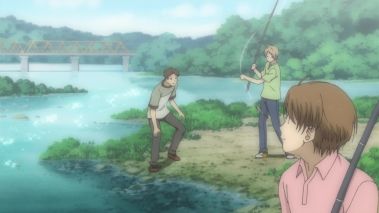 | 球磨川第三橋梁を望む川辺 | 夏目たちが釣りをしていた川辺 |